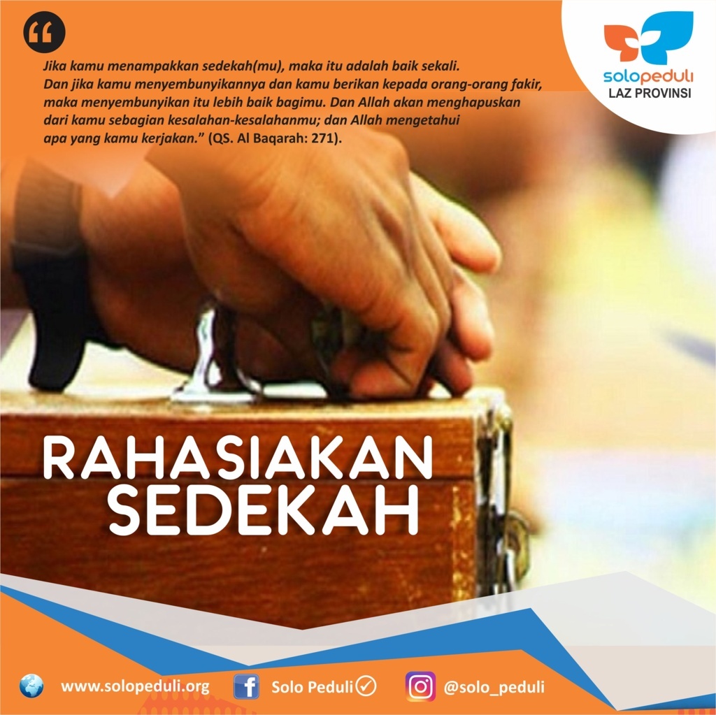 "Jika kamu menampakkan sedekah(mu), maka itu adalah baik sekali. Dan jika kamu menyembunyikannya dan kamu berikan kepada orang-orang fakir, maka menyembunyikan itu lebih baik bagimu. Dan Allah akan menghapuskan dari kamu sebagian kesalahan-kesalahanmu; dan Allah mengetahui apa yang kamu kerjakan." (QS. Al Baqarah: 271).