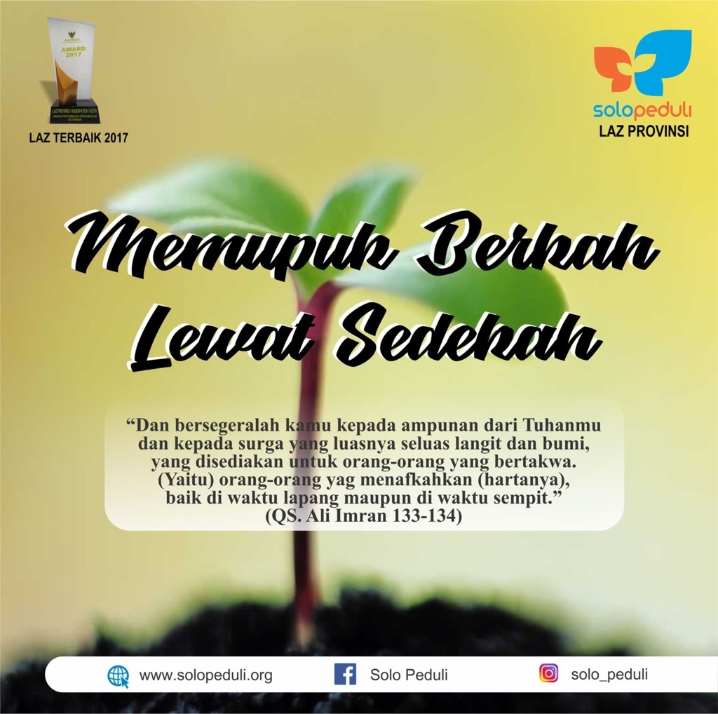 "Dan bersegeralah kamu kepada ampunan dari Tuhanmu dan kepada surga yang luasnya seluas langit dan bumi, yang disediakan untuk orang-orang yang bertakwa. (Yaitu) orang-orang yag menafkahkan (hartanya), baik di waktu lapang maupun di waktu sempit." (QS. Ali Imran 133-134)