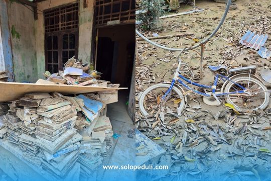 Pantauan di lokasi menunjukkan kondisi pondok pesantren yang masih memprihatinkan. Di bagian depan pondok, tampak buku-buku dan mushaf Al-Qur’an berceceran di teras. Selain itu, beberapa sepeda ontel milik santri terlihat terendam lumpur dan tidak dapat digunakan lagi.