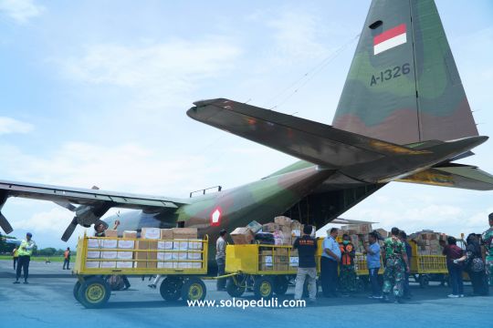 dok.humas: Loading bantuan ke Pesawat Hercules oleh tim SOLOPEDULI
