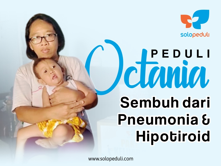 Balita asal Sukoharjo, Jawa Tengah Octania Riyadi Putri ini pertumbuhanya terganggu, otot penompangnya masih lemah, serta terkadang mengalami sesak nafas, demam serta batuk karena menderita sakit pneumonia & hipotiroid di usia 11 bulan, hingga saat ini 2th 11 bulan Octania belum bisa berjalan
