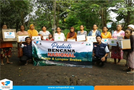 BREBES- Solopeduli menyalurkan bantuan kepada korban banjir dan tanah longsor di Desa Lekong, Brebes, Jawa Tengah, Selasa (27/2).