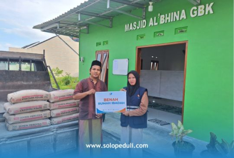 Dalam upaya mendukung kenyamanan beribadah, SOLOPEDULI kembali menyalurkan bantuan material bangunan berupa semen untuk pembangunan fasilitas tempat wudhu dan toilet di Masjid Al Bhina, Griya Bhina Tempel 3, Desa Te