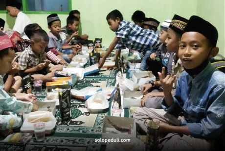 BOYOLALI, Solo Peduli – Solo Peduli Cabang Boyolali bersama Duta Peduli berbagi takjil untuk santri Taman Pendidikan Al-Qur'an (TPQ) Nurul Huda, Pusung, Kiringan, Boyolali, Kamis (21/04).Berbagi takjil ini diikuti kurang lebih 10