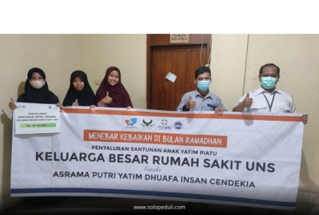 Read moreSurakarta, Solo Peduli – Dalam rangka menebar kebaikan di bulan Ramadan, Rumah Sakit (RS) UNS salurkan santunan anak yatim dan dhuafa untuk Asrama Insan Cendekia Solo Peduli yang beralamatkan di Jl. Klengkeng No.2, Kerten, Kec. Laweyan, Kota
