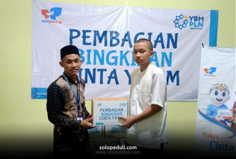 SUKOHARJO, Solo Peduli – Yayasan Baitul Maal (YBM) PLN Unit Pelaksana Pelayanan Pelanggan (UP3) Sukoharjo berkerjasama dengan Solo Peduli Cabang Sukoharjo membagikan paket cinta yatim di Griya Al-Amin Blimbing, Wonorejo, Polokarto, Sukoharjo