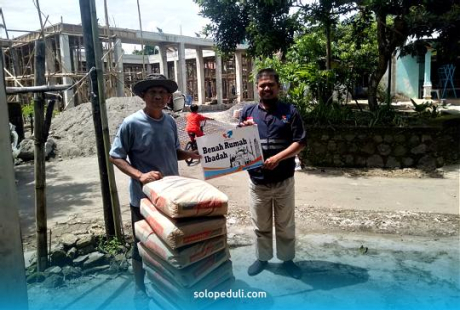 Solo Peduli melalui program Benah Rumah Ibadah menyalurkan semen untuk membatu pembangunan Masjid Al Adib di wilayah Mojolegi, Kecamatan Teras, Kabupaten Boyolali, Rabu (09/03). Manajer Pemberdayaan, Sutarno, S.Pt menyampaikan perihal bant