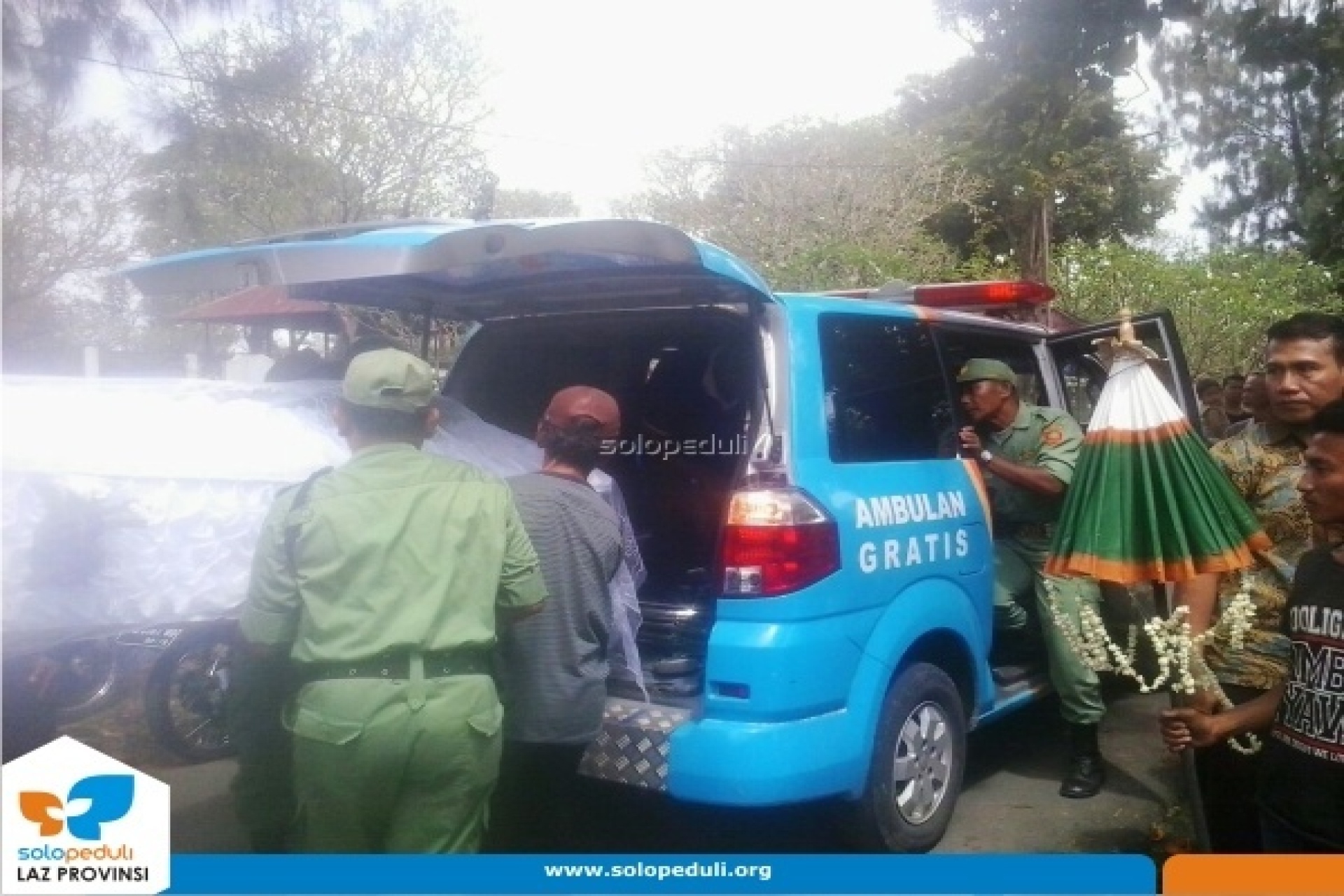 SOLO– Melalui Layanan Ambulance Gratis (LAG) Solopeduli, jenazah Ibu Yustina Sudarsih diantarkan dari Kampung Sewu RT 05/05 Jebres Solo menuju pemakaman Astana Purwoloyo pada Sabtu (31/12/2016). Ibu Yustina meninggal diusianya yang telah senja, 85 tahun.