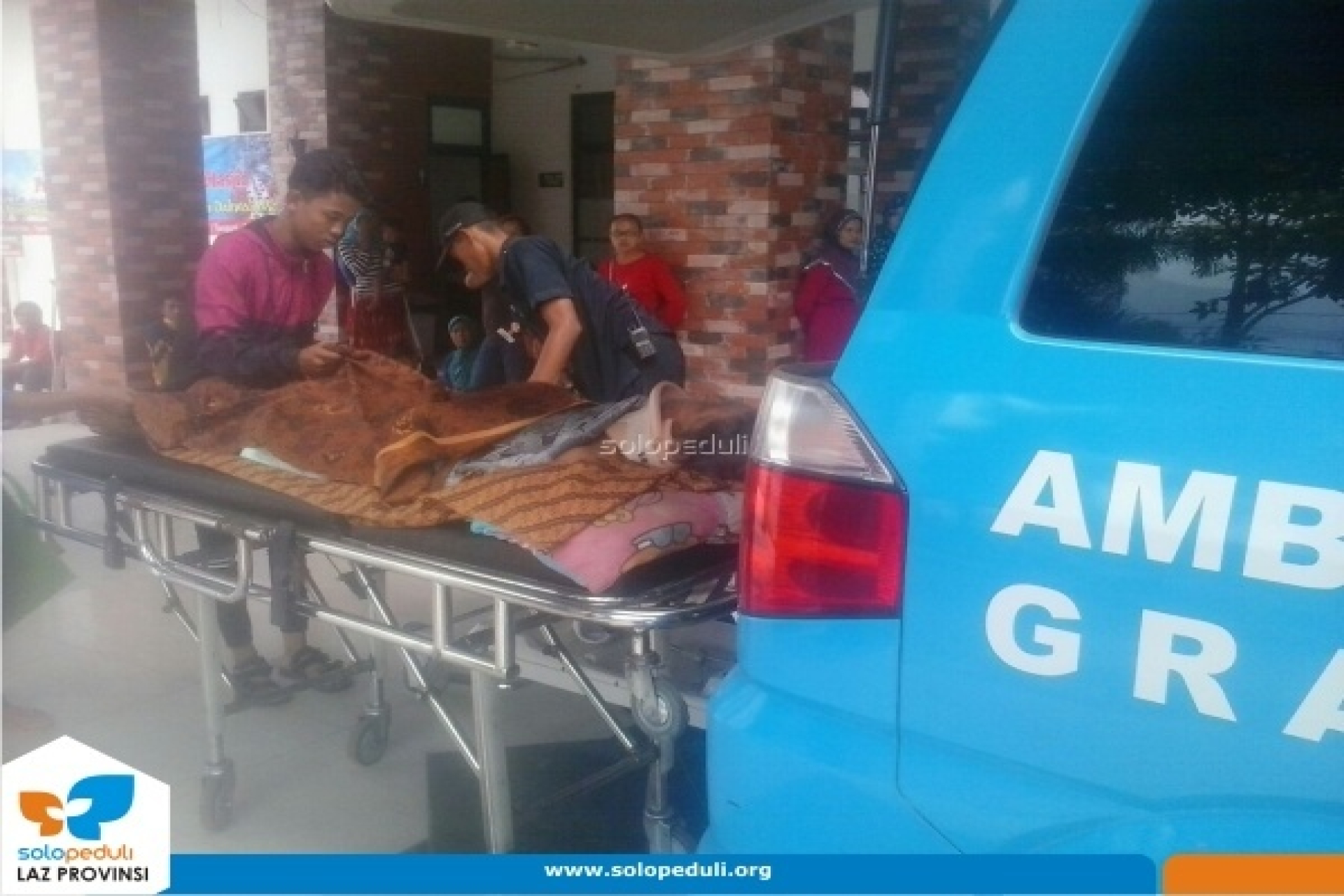 Bapak Saripo mengalami cidera patah tulang belakang karena tertabrak sepeda motor saat pulang sholat maghrib di masjid dekat rumahnya. "Semoga Bapak Saripo diberikan kekuatan dalam menghadapi sakit yang kini dideritanya yang InsyaAllah sebagai penggugur dosa-dosa beliau," ujar Aris Setyo, Koordinator Layanan Ambulance Gratis (LAG) Solopeduli. (Mario/Yofi)