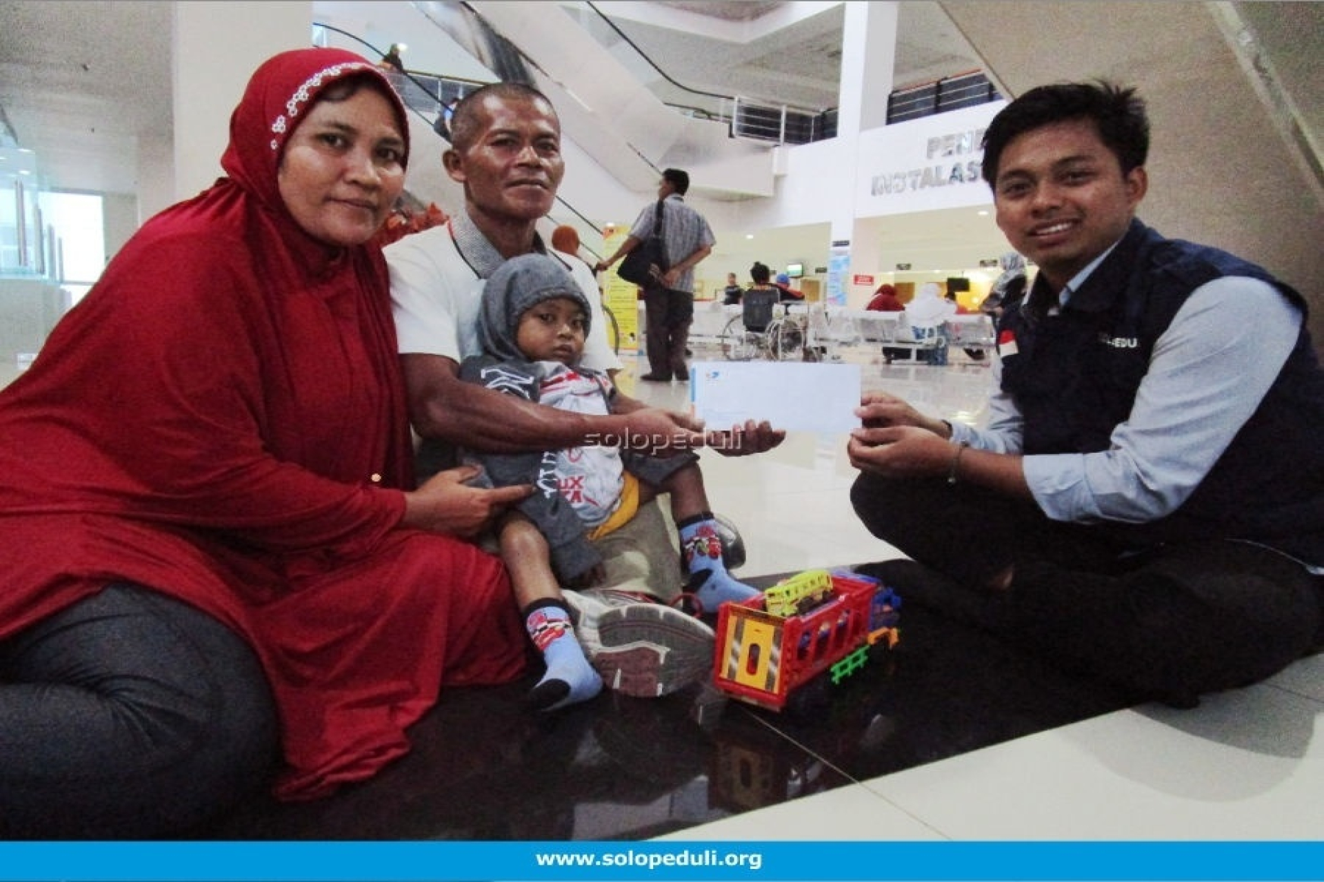 YOGYAKARTA-Solopeduli menyalurkan santunan kesehatan kepada Luqman Nur Hidayat, penderita atresia billier. Penyaluran santunan tersebut dilaksanakan di RSUP Dr. Sardjito Yogyakarta, Senin (9/10). Luqman Nur Hidayat adalah bocah berusi 4 tahun 9 bulan, anak keempat dari pasangan Pak Tumiyo (48) dan Ibu Sri Dariyani (35), warga Wonosari, Kabupaten Gunung Kidul.