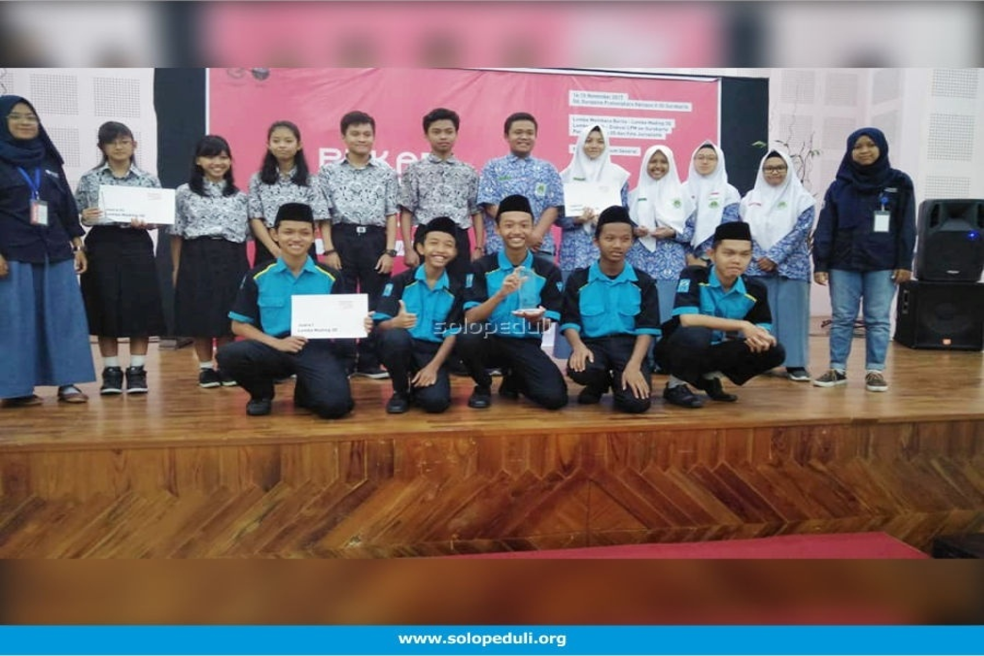 SOLO-Mading 3D (tiga dimensi) yang berjudul "Di Balik Layar Kaca" karya tim dari SMK Gratis Solopeduli Surakarta berhasil menjadi Juara 1 pada perlombaan mading 3D yang diadakan di Institut Seni Indonesia (ISI) Surakarta pada Rabu (15/11). Posisi Juara 2 diraih oleh tim dari SMA Al Islam Surakarta, dan Juara 3 ditempati SMK Marsudirini Surakarta. Lomba Mading 3D tersebut merupakan salah satu lomba yang digelar dalam ajang Pekan Intuisi 2017 yang diselenggarakan oleh Lembaga Pers Mahasiswa (LPM) Intuisi ISI Surakarta. Kegiatan yang dilaksanakan mulai Selasa (14/11) dan berlangsung hingga Rabu (15/11) di Gedung Prabangkara, Kampus 2 ISI, Mojosongo tersebut merangkum banyak kegiatan. Yakni lomba membaca berita, lomba mading 3D, lomba komik, diskusi LPM se-Surakarta, serta pameran karya 2D dan foto jurnalistik. Khusus lomba membaca berita dan lomba mading 3D diperuntukkan siswa SMA/SMK, sedangkan lomba komik untuk umum dan mahasiswa.