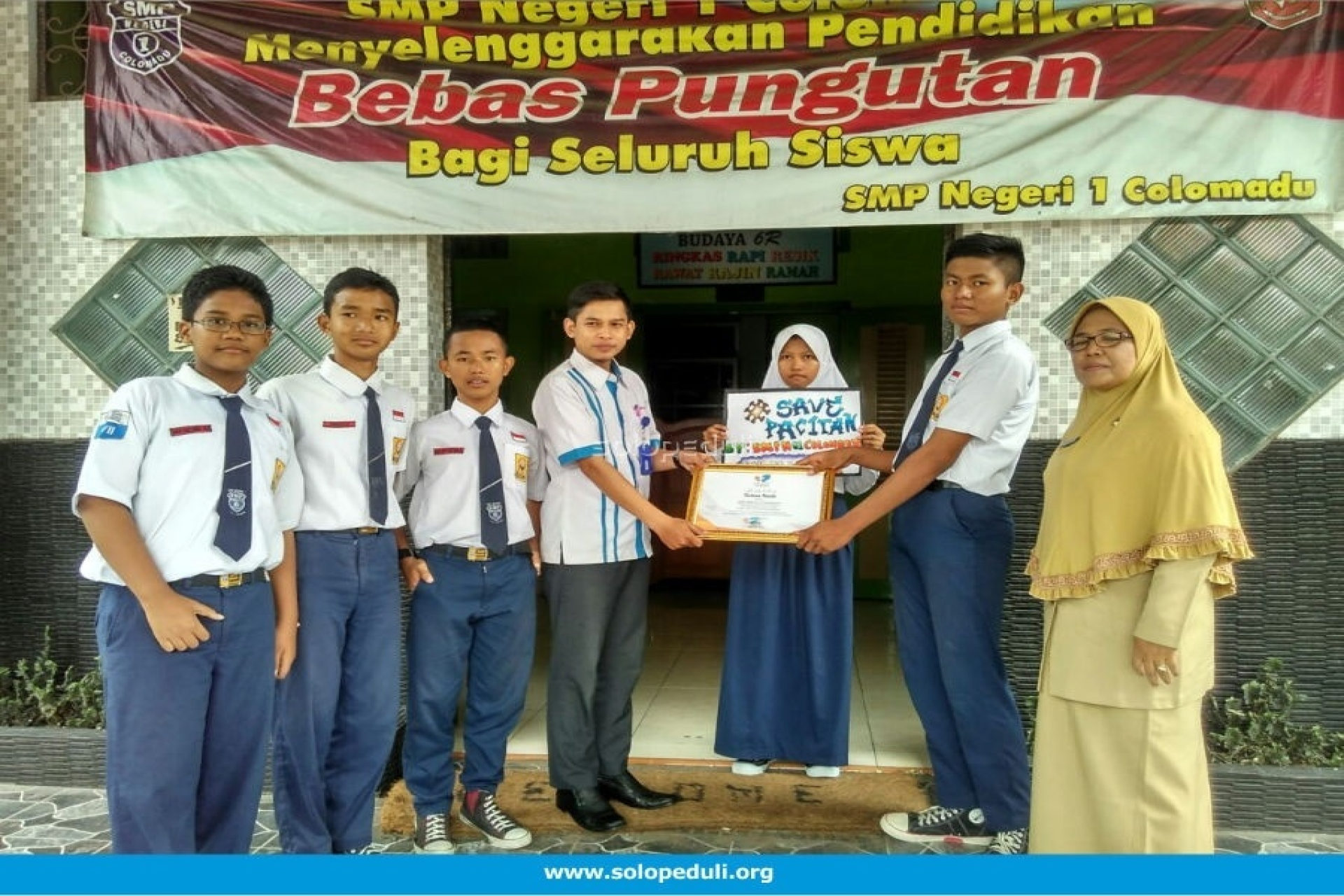 KARANGANYAR-Beberapa bencana banjir dan tanah longsor di beberapa wilayah di Tanah Air, menarik kepedulian masyarakat untuk saling membantu. Aksi kepedulian berupa penggalangan dana atau jenis bantuan lain banyak dilakukan. Seperti halnya yang dilakukan oleh OSIS SMP Negeri 1 Colomadu, Kabupaten Karanganyar. Pada Senin (4/12) seluruh keluarga besar SMP Negeri I Colomadu mengadakan kegiatan penghimpunan dana yang akan disumbangkan untuk para korban bencana banjir dan tanah longsor. Selain untuk meringankan beban para korban bencana, kegiatan galang dana juga bertujuan untuk menumbuhkan jiwa sosial dan kepedulian terhadap sesama.