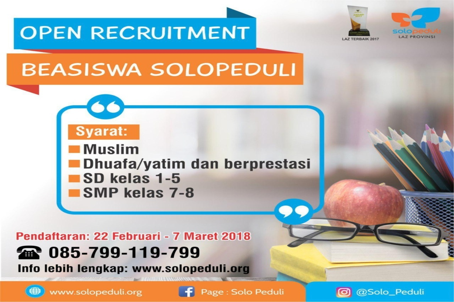 Catatan: Secara sah dinyatakan mendapatkan Beasiswa apabila hadir dan menandatangani MoU atau perjanjian dengan Yayasan Solopeduli Ummat.