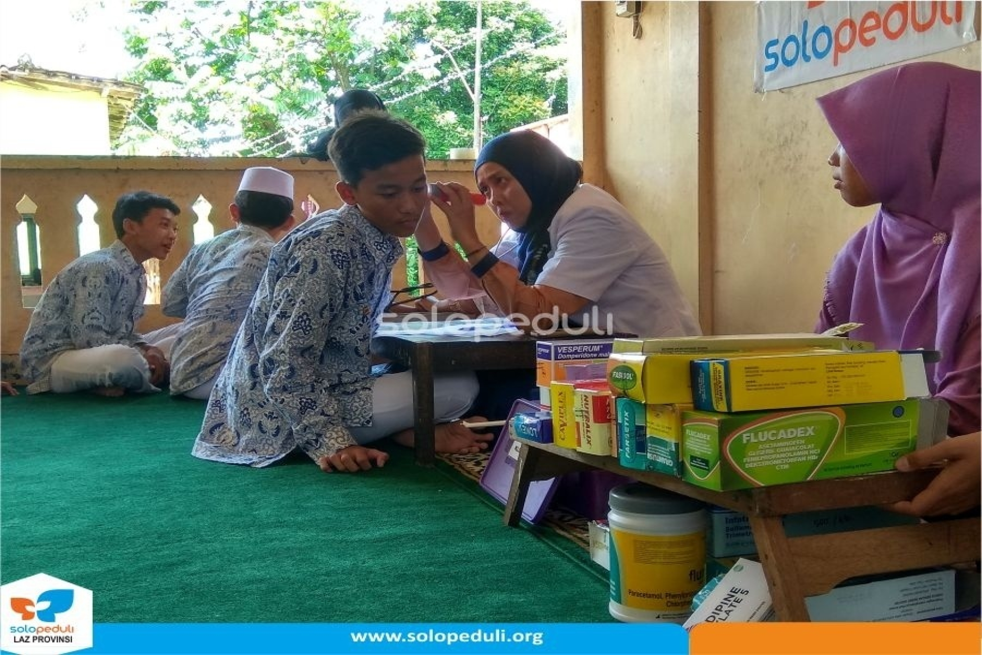 BOYOLALI- Dalam rangka "Program Kesehatan Awal Tahun", Klinik Rawat Inap Gratis Solopeduli dan Pondok Nahdlotul Muslimat mengadakan pemeriksaan Telinga Hidung Tenggorokan (THT) dan pengobatan gratis bagi santri di Pondok Nahdlotul Muslimat, Pucangan, Sawit, hari Rabu (14/3).