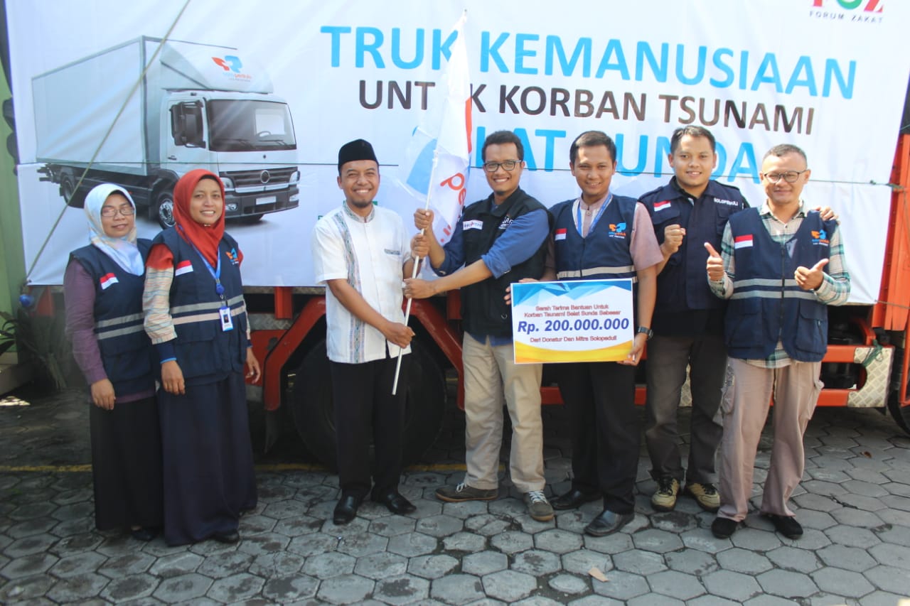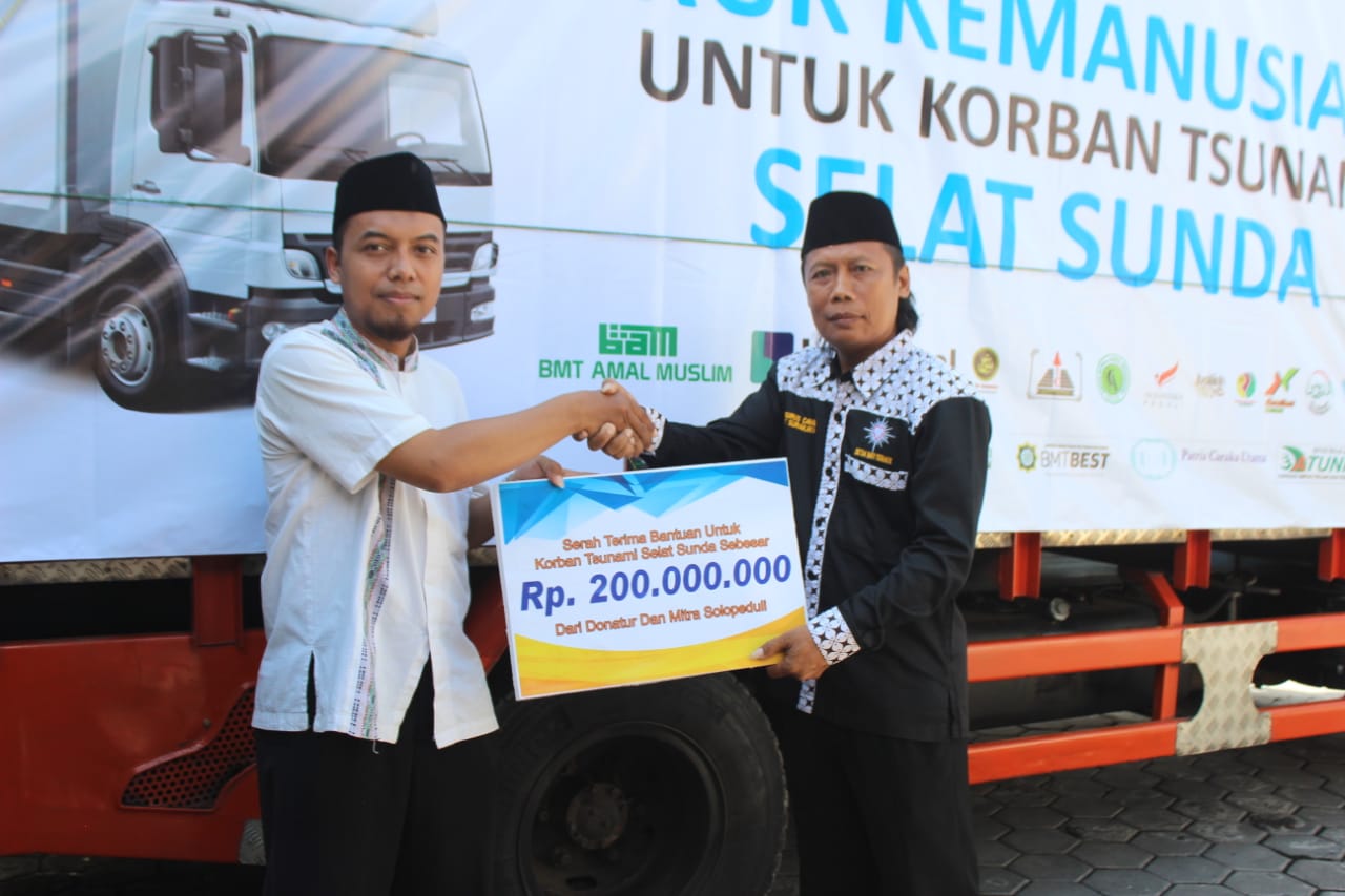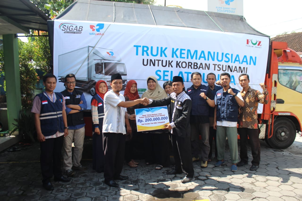Pemberangkatan tim dibuka oleh Direktur Umum SOLOPEDULI, Sidik Anshori dengan penyerahan simbolis berupa bendera SOLOPEDULI kepada Koordinator Siaga Bencana SOLOPEDULI, Firman yang memimpin tim untuk penyaluran bantuan ke Banten. Dalam acara pemberangkatan tersebut, Perwakilan donatur dan mitra SOLOPEDULI menyerahkan bantuan secara simbolis sejumlah Rp 200.000.000,- yang diwakili oleh Bidang 2 Kepelatihan dan Pembinaan siswa PSHT Surakart (Persaudaraan Setia Hati Terate), Bapak Suyono dari PSHT (Persatuan Setia Hati Teratai) kepada Direktur Umum SOLOPEDULI.