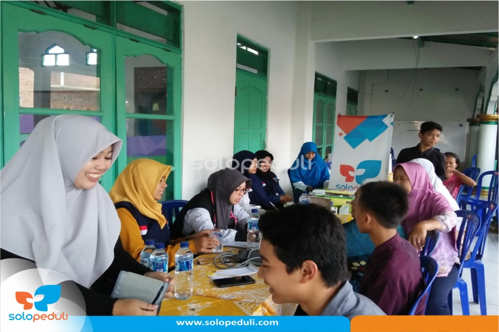 KLATEN - Remaja Masjid Al Himmah Tanjung Anom Karangan Karanganom Klaten menggandeng SOLOPEDULI dan PMI mengadakan Pengobatan gratis, donor darah, lomba mewarnai dan bazar (3/2). Pada acara tersebut, remaja Masjid Al Himmah juga menyerahkan donasi sebanyak Rp 750.000,- yang ditujukan bagi para korban banjir Pekalongan melalui SOLOPEDULI. Acara dihadiri ratusan peserta yang berasal dari masyarakat sekitar.