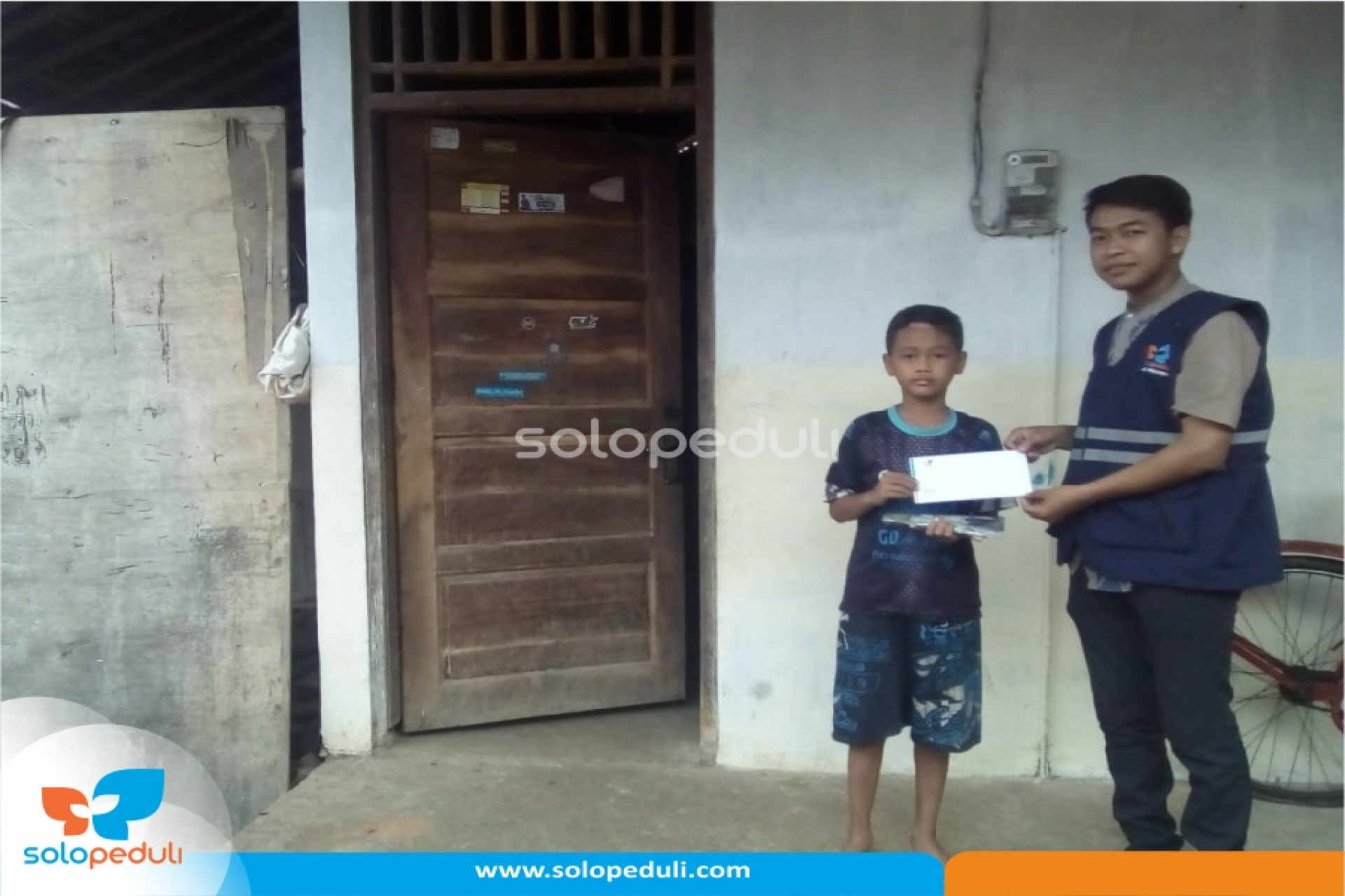 SUKOHARJO - SOLOPEDULI memberikan santunan kepada Avito Musthova Juniar (korban Laka) 22/2. Avito terlahir dari keluarga kurang mampu di daerah Banmati Sukoharjo. sejak kecil, Alvito dan ketiga saudaranya sudah ditinggal pergi Ibunya. Avito duduk di bangku kelas 7 SMP Negeri 2 Tawangsari. Setiap hari Avito berangkat ke sekolah naik sepeda. Walau Ayah Avito bekerja serabutan tidak mematahkan semangat Avito untuk belajar.