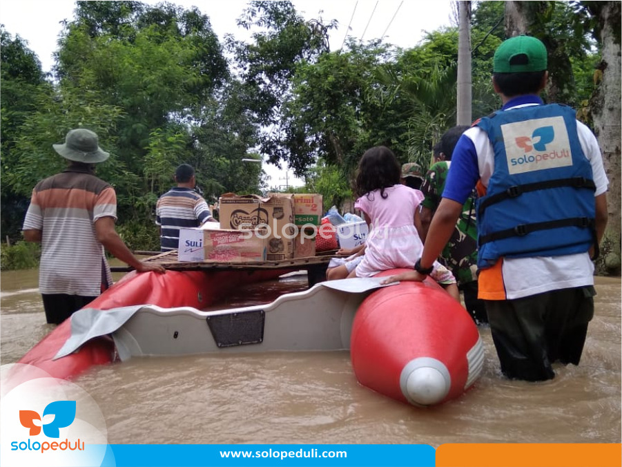 ”Banjir menyebabkan aktivitas warga lumpuh, kami harus mengirimkan bantuan logistik ke rumah-rumah warga dan ke posko bantuan melalui jalan-jalan yang tergenang banjir menggunakan perahu karet. kedalaman air ada yang masih mencapai 2-3 meter,” ungkap Firman kepada tim media SOLOPEDULI.