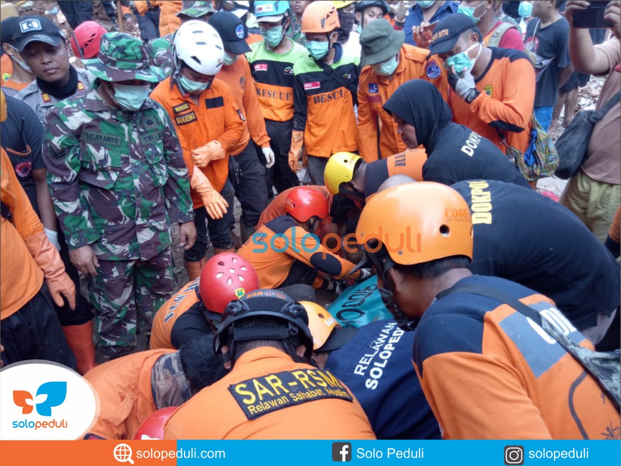 Alhamdulillah, tepat pukul 14.10 WIB, kedua mayat ditemukan setelah menggerus longsor sedalam 3 meter dengan alat berat, ungkap kordinator SIGAB SOLOPEDULI, Firman. Pihaknya merencanakan untuk tetap berada di wilayah terdampak longsor untuk beberapa hari ke depan. Ini kami lakukan agar kami bisa mengetahui persis kebutuhan apa yang paling tepat untuk diberikan bagi warga terdampak longsor, yakni melalui program recoveri paska bencana, imbuh Firman kepada tim media SOLOPEDULI.