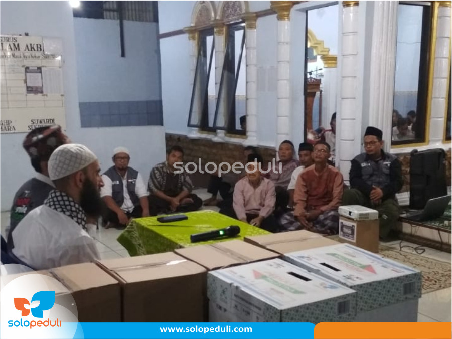 KARANGANYAR - SOLOPEDULI bekerjasama dengan Masjid Syah Alam Akbar di Pandean Tasikmadu Karanganyar melakukan penggalangan dana kemanusiaan bagi korban perang di Palestina. Kegiatan dilakukan setelah sholat Tarawih pada pukul 19.00-21.00 WIB pada 14/5.