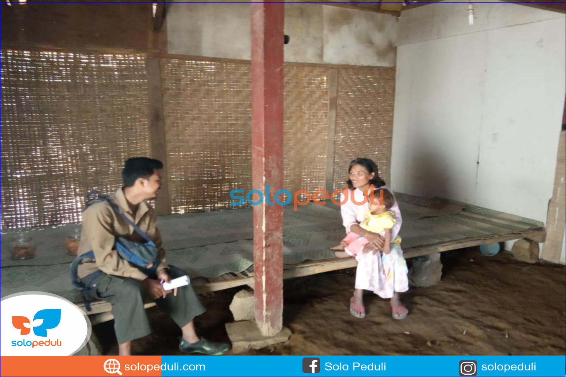 Ibu Sutinem janda (umur 45 tahun) mengalami kelainan mental dan mempunyai 5 orang anak ini menerima bantuan sembako dari Solopeduli. Bantuan disalurkan di rumah-nya di lereng gunung Merbabu, Dukuh Malibari RT.07/RW 01, Desa Ngargoloko Kecamatan Gladaksari Ampel Boyolali, Jawa Tengah pada 28/6. Ibu Sutinem merupakan istri dari almahrum Mitro Slamet yang meninggal 1 tahun lalu. Suaminya meninggal setelah pulang dari buruh tani ladang tetangga. Ibu Sutinem menanggung 5 anaknya yang masih kecil-kecil, tetapi karena ia mengalami kelainan mental dan tidak bisa bekerja, maka anak pertama yang berusia 15 tahun harus menanggung kebutuhan hidup keluarga, Juwadi.