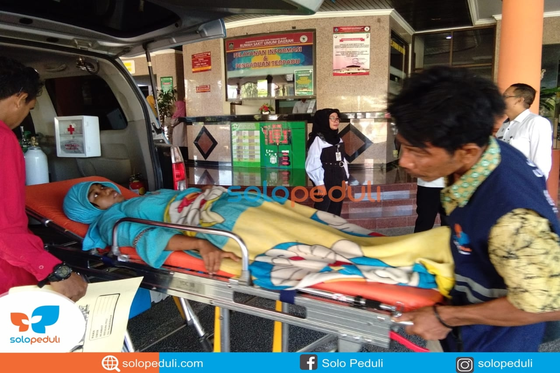 Ambulan Solopeduli mengantarkan Holida menuju Rumah Sakit Kota Mataram NTB 5/7. Holida merupakan warga Dusun Papak Desa Genggelang Kecamatan Gangga Kabupaten Lombok Utara NTB.