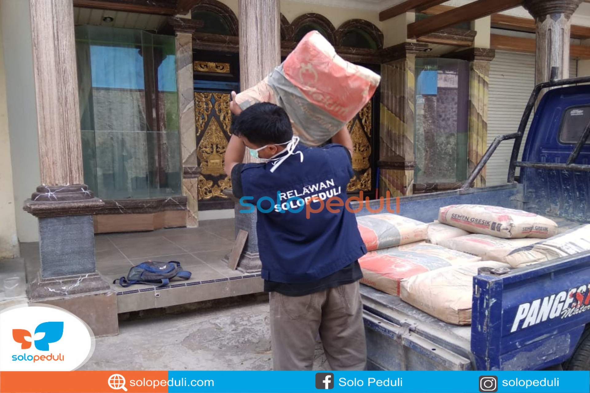 Relawan Sigab Solopeduli melakukan surve pembangunan Masjid, untuk melihat layak tidaknya Masjid tersebut mendapatkan bantuan. Hari ini kami menyalurkan bantuan berupa 12 karung semen, mudah-mudahan pembangunan Masjid Al Fallah bisa segera selesai agar aktivitas ibadah warga bisa kembali berjalan, jelas Nuruddin selaku kordinator Sigab Solopeduli.
