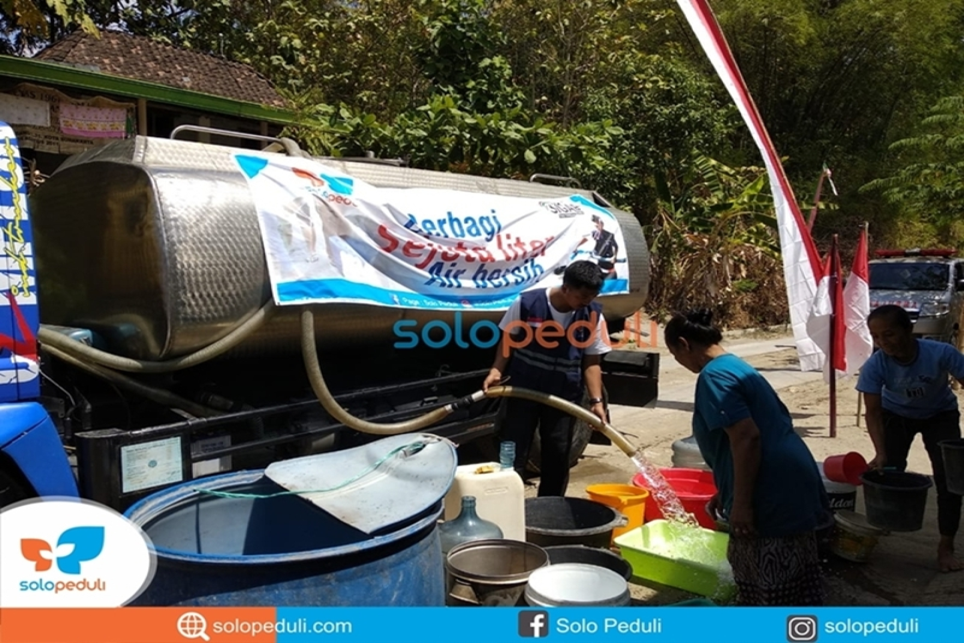 KARANGANYAR - Adanya kesulitan air bersih yang melanda sejumlah dusun di Kelurahan Krendowahono Gondangrejo Karanganyar langsung di respons oleh relawan Sigab Solopeduli pada hari Kamis (8/8).