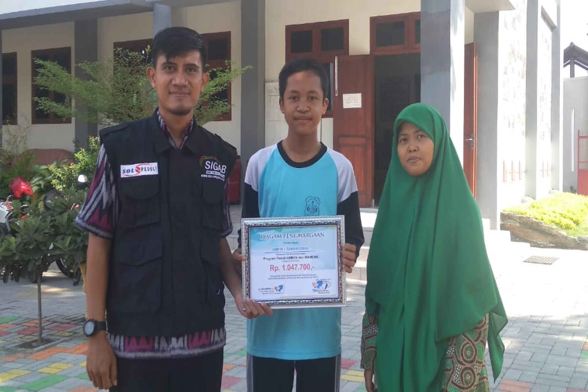 SUKOHARJO - SOLOPEDULI bekerjasama dengan SMP N 1 Tawangsari mengadakan penggalangan dana untuk korban bencana alam di Ambon dan bencana sosial di Wamena. Penggalangan dana yang dilakukan seluruh civitas SMP N 1 Tawangsari terkumpul sebesar Rp 1.047.700,-. Dana yang terkumpul diserahkan oleh Siti Wahidatun Afrini S.Pd.I dan Maulana Hanif Utsman kepada Mahbub, perwakilan SOLOPEDULI Sukoharjo (15/10)