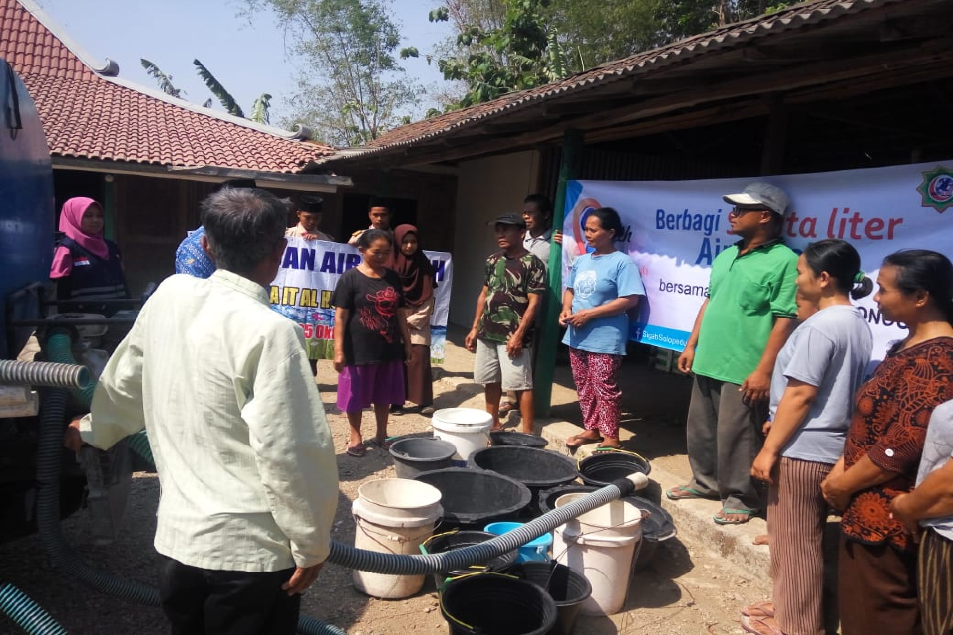 WONOGIRI - 10 tangki air bersih disalurkan ke Sirnoboyo dan Guwotirto. Dua Desa tersebut berada di Kecamatan Giriwoyo, Kabupaten Wonogiri. Wilayah tersebut dilanda kekeringan sejak 6 bulan yang lalu.