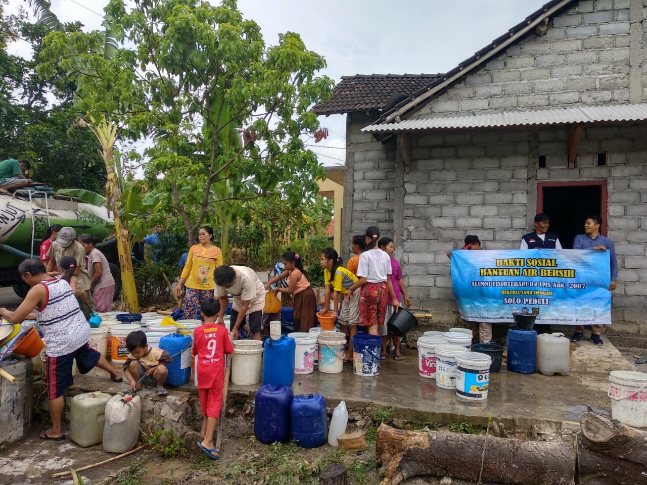 Suka cita warga menyambut bantuan air bersih. Hal ini terlihat dari hampir seluruh warga telah menanti kedatangan air sejak siang di tempat yang telah ditentukan. Arif, salah satu perwakilan alumni Fisioterapi UMS menuturkan bahwa bantuan air bersih yang diberikan ini lantaran krisis air yang dialami warga telah berlangsung lama. ”Medan yang sulit dan dalamnya sumur milik warga ,80 meter lebih, telah lama mengering, kondisi ini sangat memprihatinkan,” ungkap Arif.