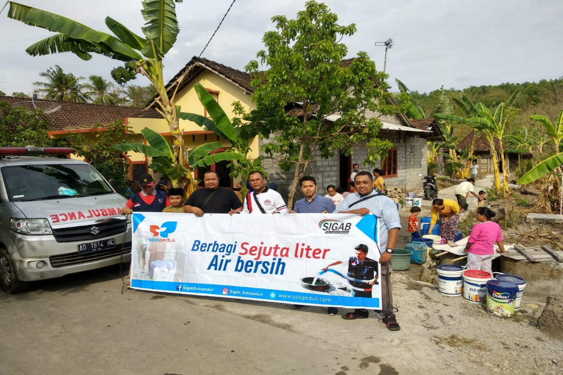 Sigab SOLOPEDULI bersama Alumni Fisioterapi UMS menyalurkan 22.000 ribu liter air bersih. Air tersebut dikirim dengan menggunakan 4 truk tangki air bersih, masing-masing tangki berkapasitas 5.500 ribu liter. Selain di Dusun Jatilawang, air bersih juga disalurkan di Guwo Jatilawang Wonosamudra pada 2/11.