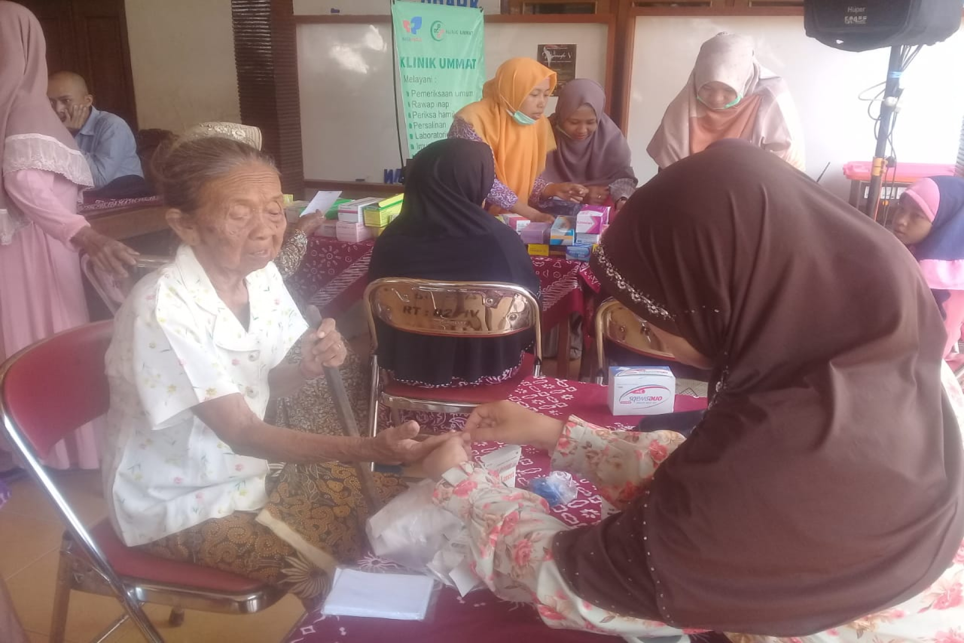 Tim Medis dari Klinik Ummat hadir 1 Dokter, 3 Paramedis untuk tensi, cek lab dan obat. Masyarakat yang periksa beberapa mengeluhkan sakit deman, pusing, gatal serta keluhan sakit di lambung. Menurut salah satu warga, mbah Giyem (72 tahun) mengeluhkan sakit di punggungnya seperti merasa pegal-pegal karena jalannya sambil membungkuk, setelah diperiksa Dokter dan mendapatkan obat merasa senang dan berterimakasih karena periksanya tidak jauh, yakni di Balai Desa.