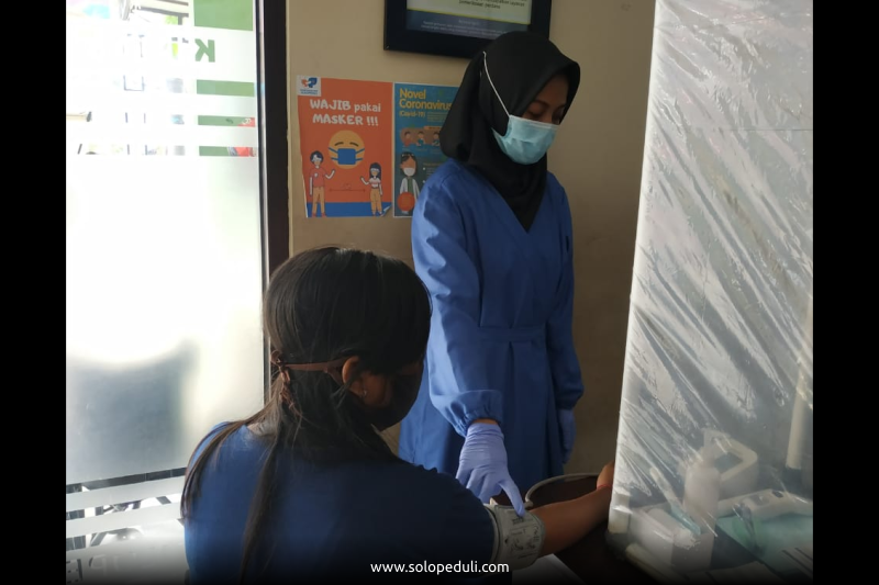 Karena pandemi covid-19 akseptor datang bertahap, setiap harinya hanya dilakukan 10 pemasangan KB. Kegiatan dilakukan di Klinik SOLOPEDULI di Gendingan, Jl. Petir RT.01, RW.14, Jebres, Kecamatan Jebres, Surakarta.