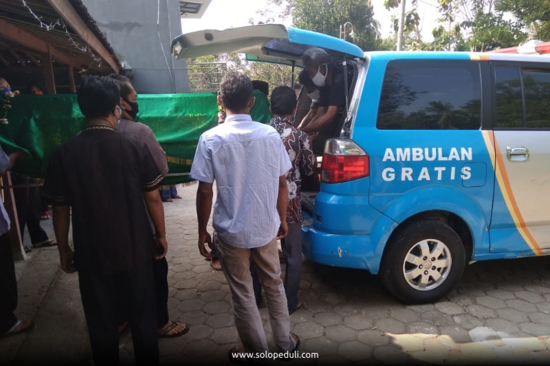 Ambulan Gratis SOLOPEDULI mengantarkan jenazah dari rumah duka di Tukluk Kerjo Lor Ngadirojo Wonogiri menuju ke pemakaman di Desa. ”Tempat pemakamannya sebenarnya cukup dekat karena masih 1 wilayah tetapi jalannya susah, kiri dan kanan sawah,” jelas Driver ambulan Gratis SOLOPEDULI wilayah Wonogiri, Sukirman pada 10/8.