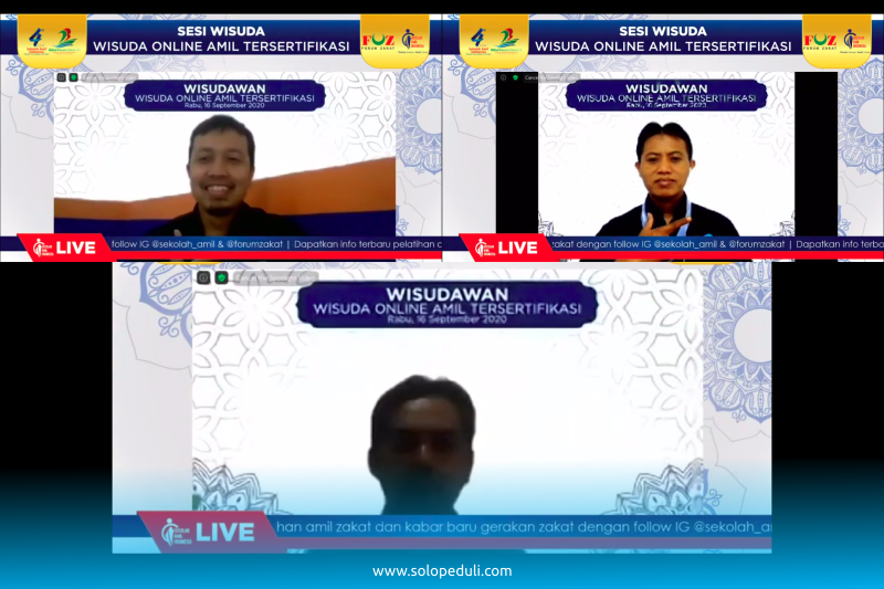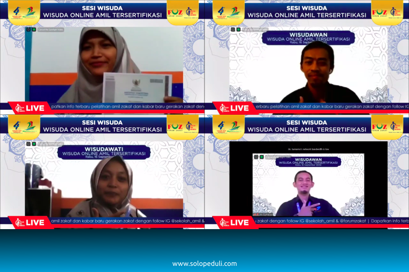 8 pegawai SOLOPEDULI yang mendapat Sertifikasi Amil dari SAI (Sekolah Amil Indonesia) diwisuda secara online. Kegiatan wisuda yang bertepatan dengan milad ke 4 SAI ini diikuti 198 peserta dari seluruh lembaga zakat se-Indonesia. 8 peserta dari SOLOPEDULI yang diwisuda