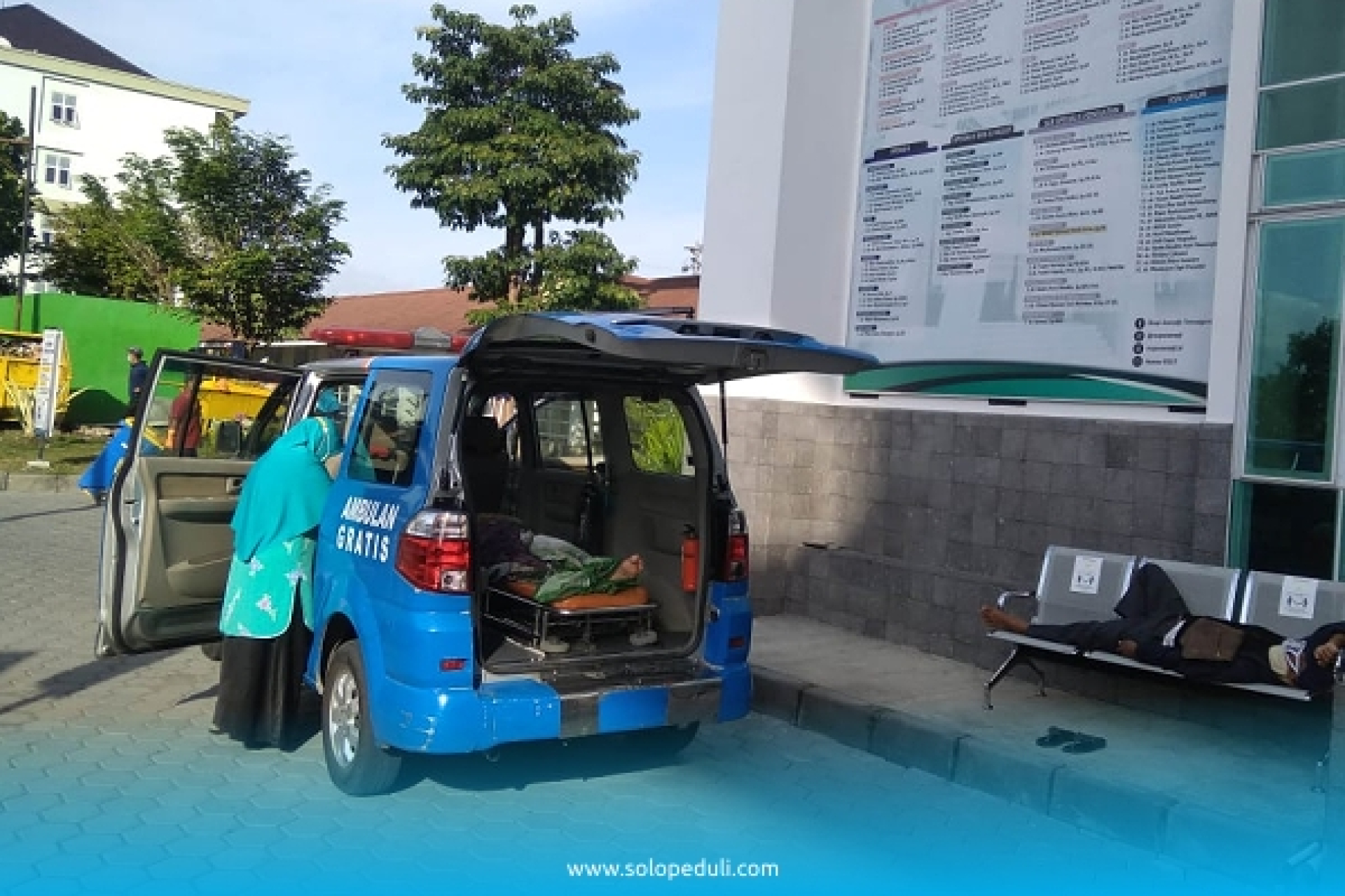 Ambulan Gratis SOLOPEDULI menjemput Ibu Estikomah ke rumahnya untuk diantarkan ke RSUP dr. Soeradji Tirtonegoro Klaten. ”Pasien tidak bisa jalan sendiri, maka alat dragbar saya bawa masuk rumahnya untuk memudahkan proses mengangkat pasien. Lalu pasien digotong beserta spreinya dan dinaikkan ke dragbar kemudian didorong masuk ke ambulan,” jelas Driver Ambulan Gratis SOLOPEDULI area Klaten, Bapak Indarso pada 10/11.