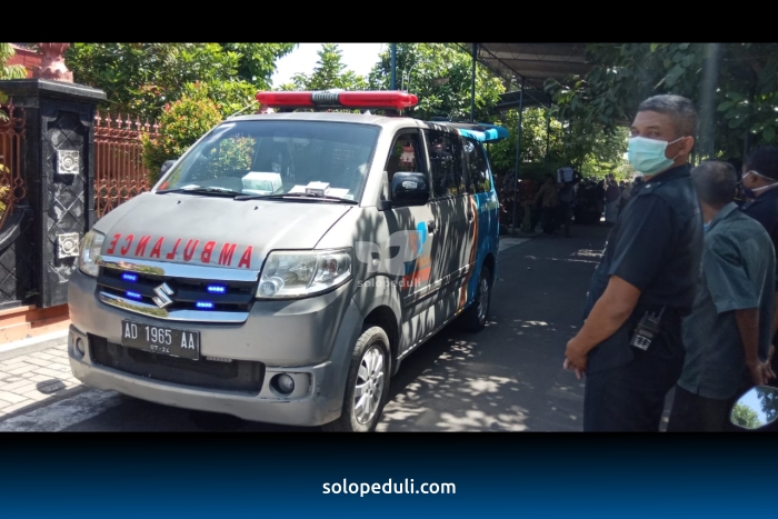 Ambulan menjemput jenazah dari rumahnya di Mojosari, RT 1, RW 1, Sragen Kulon untuk diantarkan ke pemakaman di Pemakaman Kroyo, Karangmalang, Sragen pada Jumat, 25/12/2020. ”Matur suwon kathah SOLOPEDULI sudah mengantarkan almarhum Bapak ke pemakaman, kami sangat terbantu, dan matur suwon sudah membantu kami tanpa dipungut biaya sepeserpun,” ucap Hendro Wanto.