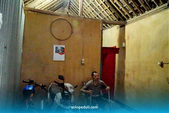 Dikunjungi tim Solo Peduli pada Selasa (22/2) di kediaman Irfan, terlihat rumah yang sederhana menjadi saksi semua aktivitas Irfan di atas kursi rodanya. Rumah dengan lebar 5 x 10 meter itu, dulu dibuatkan dari pemerintah desa. Kondisi terkini penyangga atap sudah banyak yang rapuh, sangat mengkhawatirkan kalau ada angin besar bisa saja akan roboh.