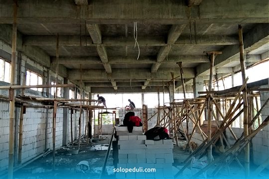Solo Peduli terus semangat mengejar target pembangunan SMK Gratis yang harus rampung sebelum tahun ajaran baru 2022-2023. Dalam mempercepat pembangunan, setiap seminggu satu atau dua kali tim meninjau proses pembangunan gedung SMK Gratis. Menurut hasil tinjauan, proses pembangunan gedung ini baru mencapai 60,05% untuk 9 ruangan dalam tiga lantai, Kamis (10/03/2022).