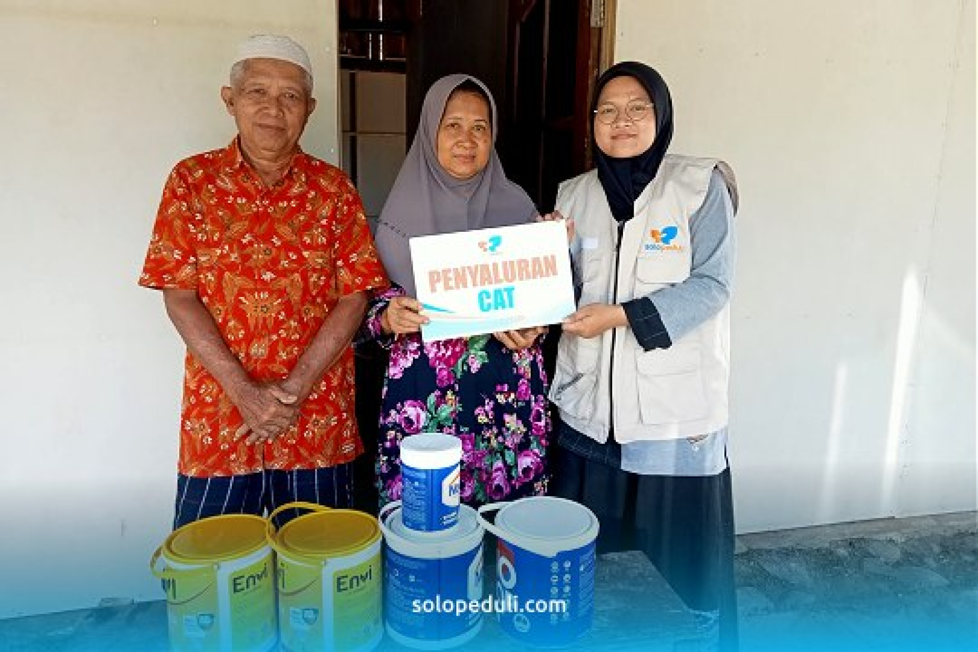 Staff Pendayagunaan Solo Peduli, Soni Raharja menyerahkan langsung bantuan cat untuk Rohmani. Semoga sedikit yang Solo Peduli dan donator kontribusikan ini bisa membantu Rohmani.