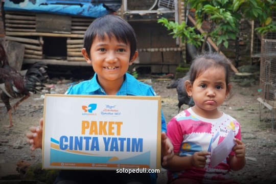 Salah satu penerima bingkisan Cinta Yatim dari Solo Peduli , Nias (8 tahun) dan Adila (3 tahun) adalah 2 bersaudara dari keluarga kurang mampu. Ayahnya 2 tahun lalu meninggal karena sakit diabetes. Ibunya, Sri Setyoningsih kini seorang diri merawat mereka.