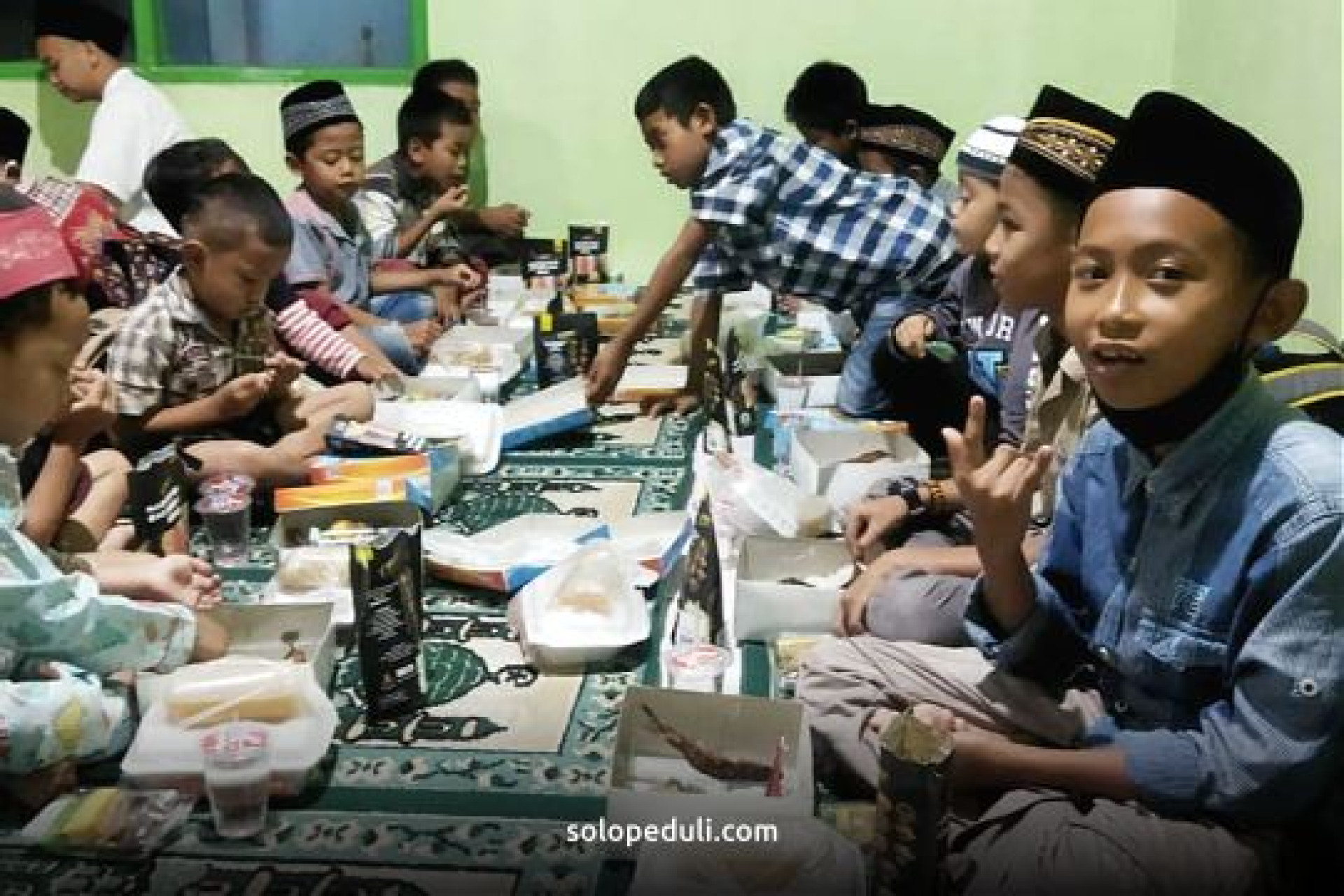 BOYOLALI, Solo Peduli – Solo Peduli Cabang Boyolali bersama Duta Peduli berbagi takjil untuk santri Taman Pendidikan Al-Qur'an (TPQ) Nurul Huda, Pusung, Kiringan, Boyolali, Kamis (21/04).