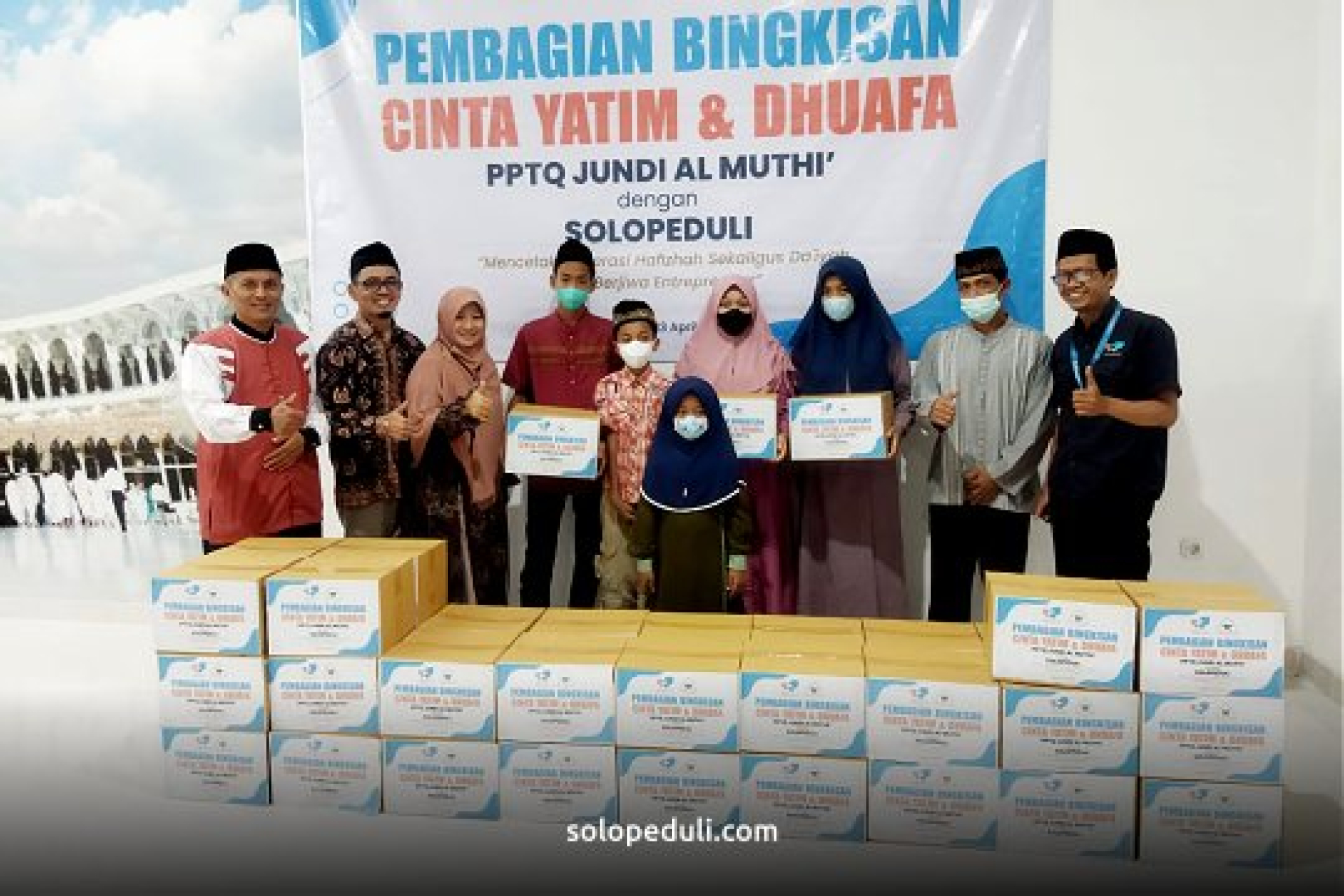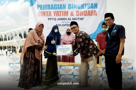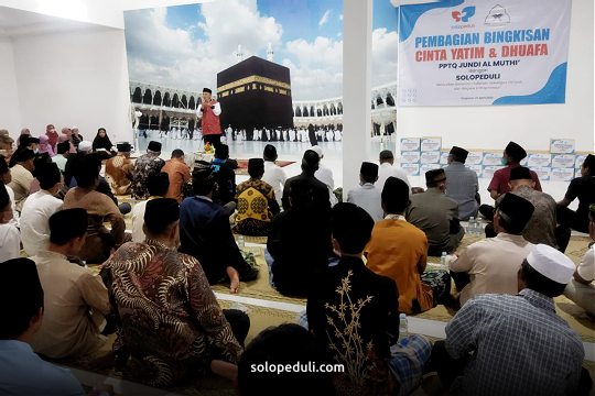 Bantuan sebanyak 45 paket, diserahkan langsung oleh Kepala Cabang Solo Peduli Boyolali, Iman Tugiman, kepada para penerima bingkisan yatim dan dhuafa di Aula PPTQ Jundi Al Muthi’.