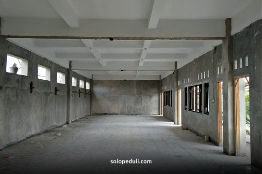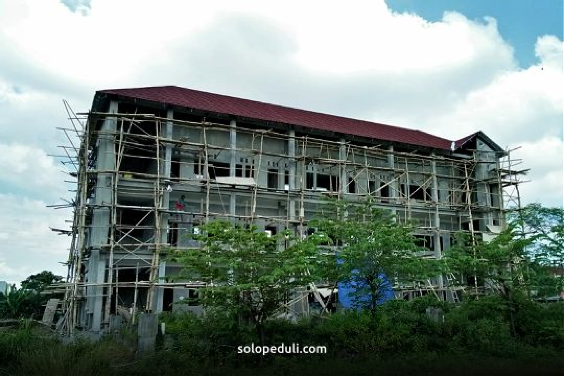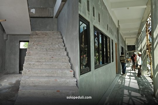 Libur hari raya telah usai, untuk memantau progres pembangunan Gedung Utama SMK Gratis Solo Peduli Staff Pendidikan Solo Peduli, Ahmad Zakaria Rahman mengunjungi pembangunan gedung SMK, Jumat (13/05).