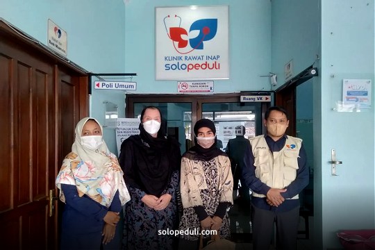 Dr. Kaja Borchgrevink dan Indah Piliyanti didampingi Harjito, S.Pd juga melakukan kunjungan ke Klinik Solo Peduli dan SMK Gratis Solo Peduli.