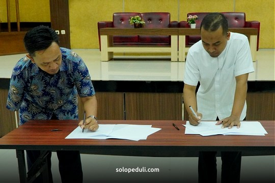 Karanganyar, Solo Peduli - Direktur Utama Solo Peduli, Sidik Anshori dan perwakilan dari Mitra Kepanitiaan Zakat (MKZ) menandatangani perjanjian perpanjangan kerja sama Mitra Kepanitiaan Zakat (MKZ), Jumat (17/6). Penandatangan dilaksanakan dalam agenda Training Scale Up by Winning Customer Experience yang digelar di LPPKSPS Kemdikbud Ristek, Gondangrejo, Karanganyar.