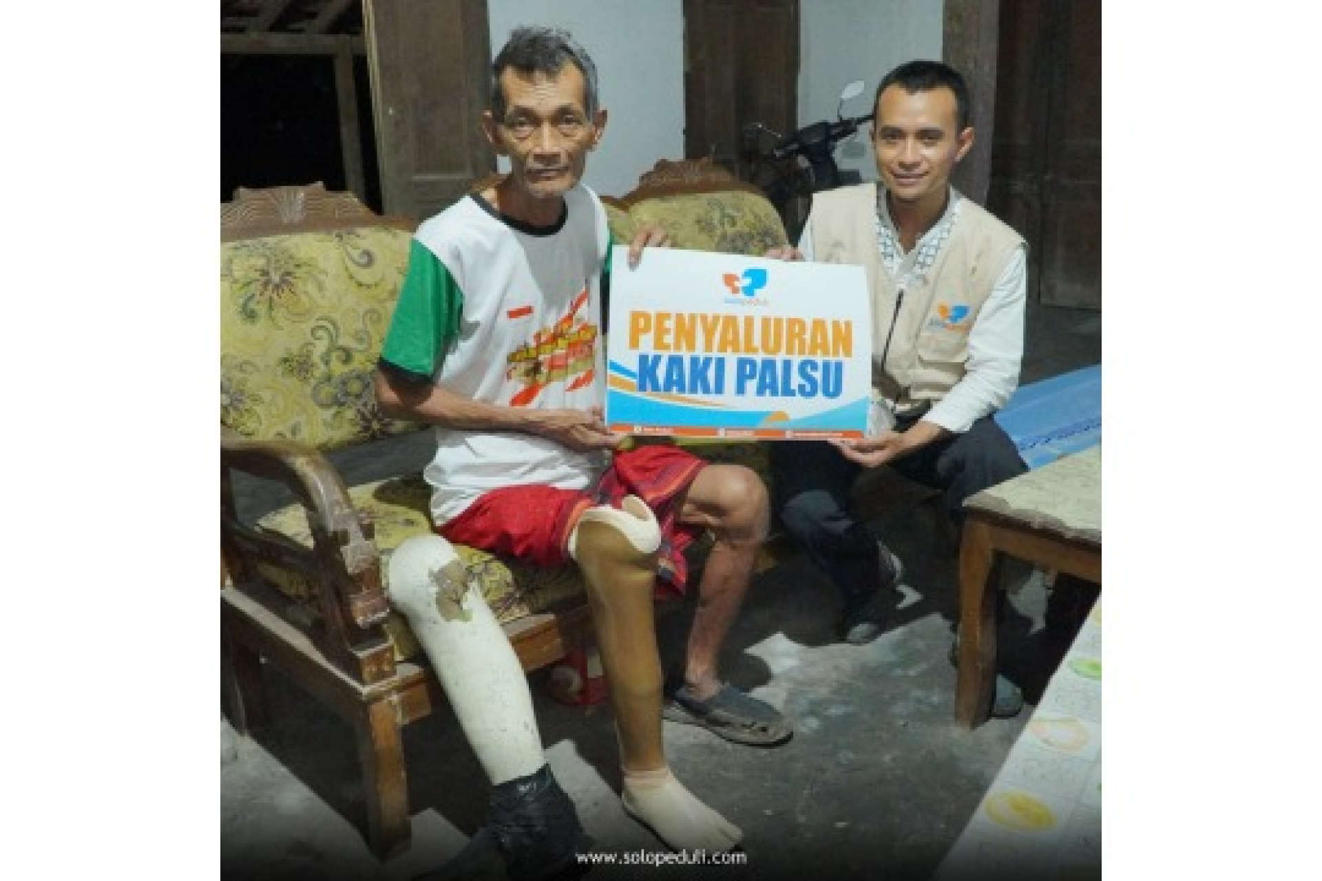KLATEN, Solo Peduli - Melalui "Program Santunan Kesehatan", Solo Peduli menyalurkan bantuan kaki palsu untuk Warsono warga Jungkare RT 02/001, Karanganom, Klaten, Jumat (22/7).