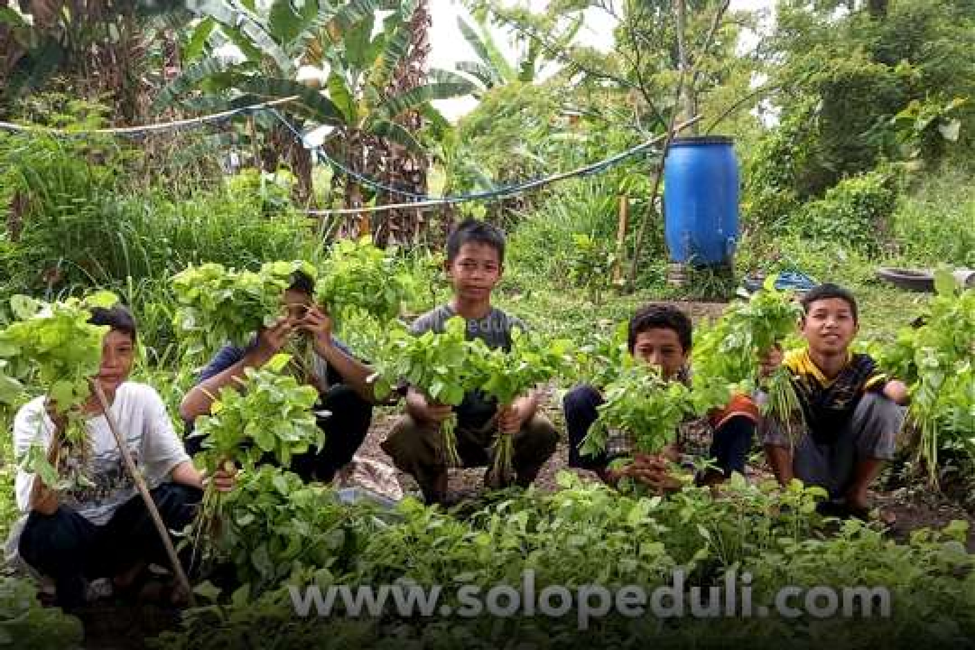 Klaten - Para santri Pondok Pesantren Baiturrahmah Solo Peduli ditemani dengan para asatidz melakukan kegiatan panen sayuran yang ada di kebun santri. Sayuran yang ditanam yaitu sayur sawi, kangkung, terong, cabai dan sayur bayam.