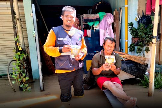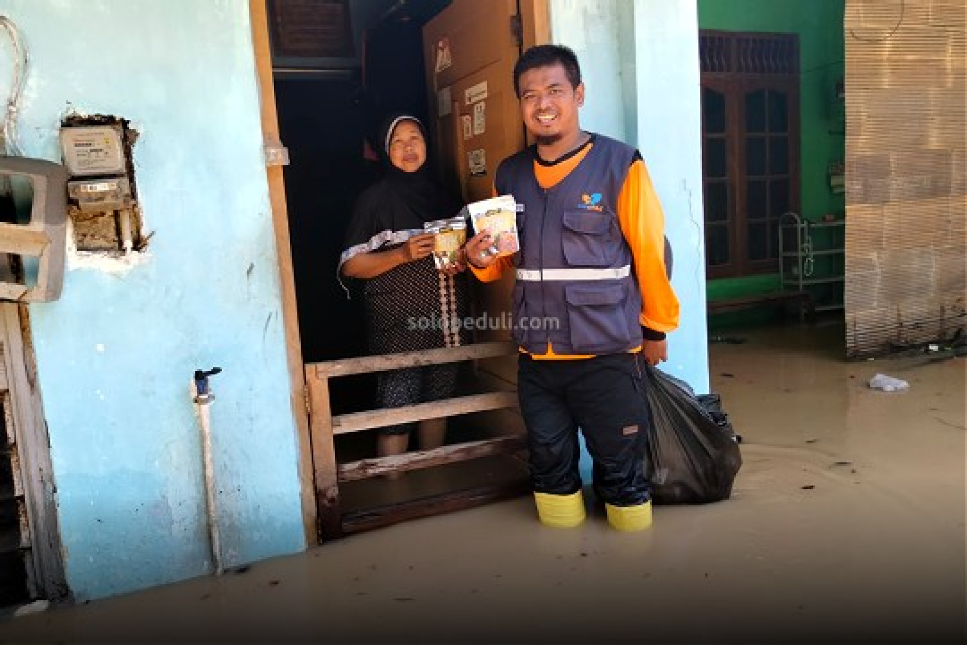 Siaga bencana (Sigab) Solo Peduli diterjunkan untuk membantu evakuasi rumah warga yang masih tergenang dan juga mendistribusikan Abon Djoss untuk konsumsi para warga yang terdampak banjir.